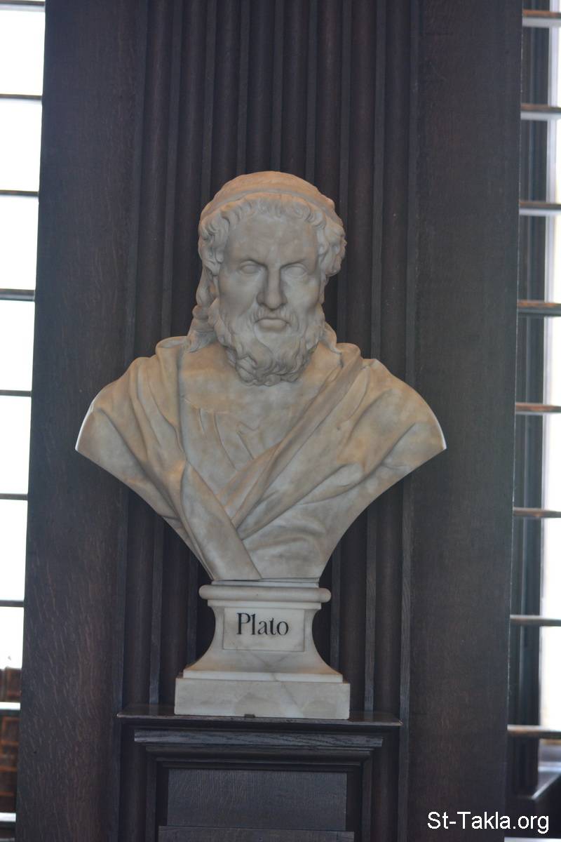 أفلاطون (428/427 أو 424/423 – 348/347 ق. م.)، تمثال نصفي - من صور مكتبة كلية الثالوث (ترينيتي كوليدج)، دبلن، أيرلندا - تصوير مايكل غالي لموقع الأنبا تكلاهيمانوت، 21 إبريل 2017 م.