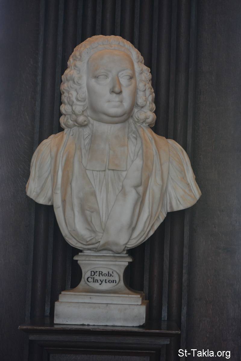 Robert Clayton, by Simon Vierpyl, bust: Stall K - Library of Trinity College, Dublin, Ireland - Photograph by Michael Ghaly for St-Takla.org, April 21, 2017.
