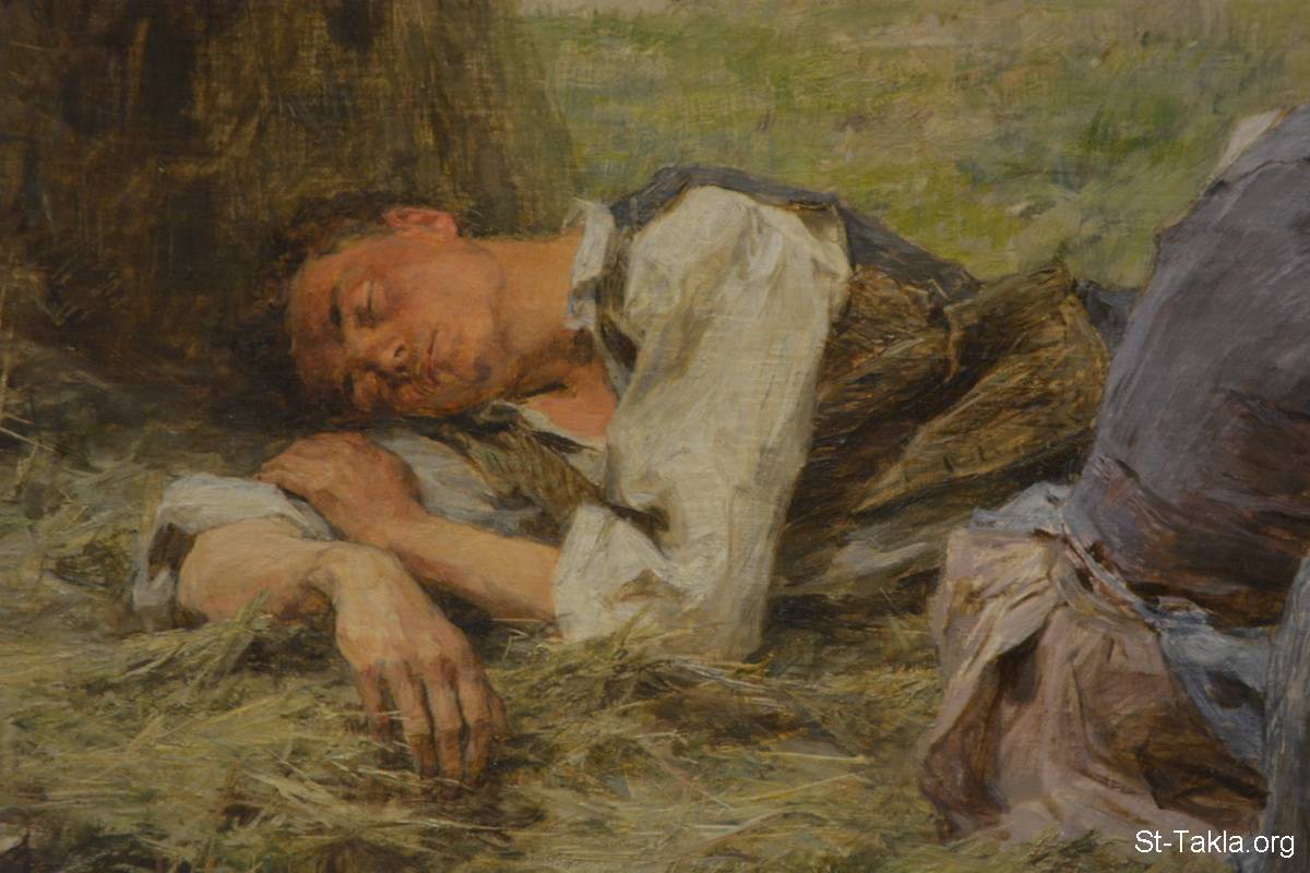 الحصادون في حالة راحة (تفاصيل 1)، لوحة رسم ليون أوجستين ليرميت، 1888 م.، زيت على قماش - الفن الحديث - من صور المعرض القومي، دبلن، أيرلندا - تصوير مايكل غالي لموقع الأنبا تكلاهيمانوت، 24 إبريل، 20 يونيو، 7 و10 يوليو 2017 م.