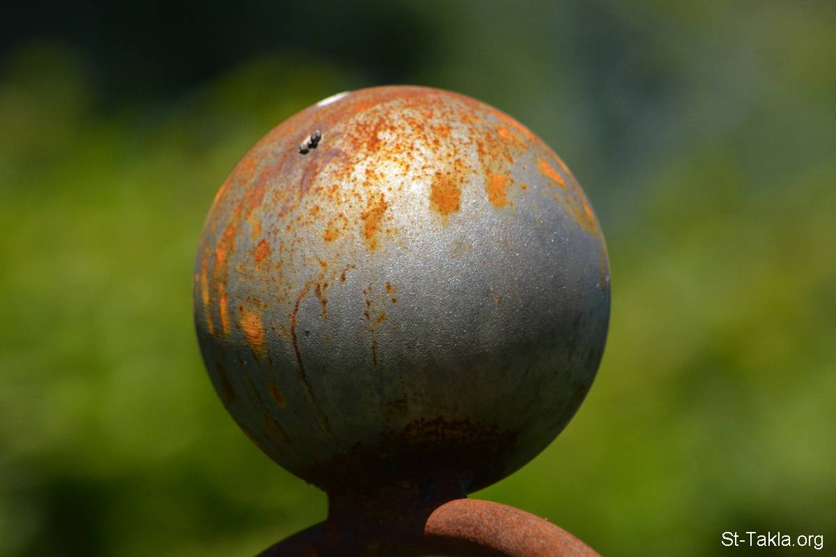 جسم كروي معدني مع صدأ - من صور الحدائق النباتية القومية، دبلن، أيرلندا - تصوير مايكل غالي لموقع الأنبا تكلاهيمانوت، 15 و17 يونيو و5 و6 يوليو 2017 م.