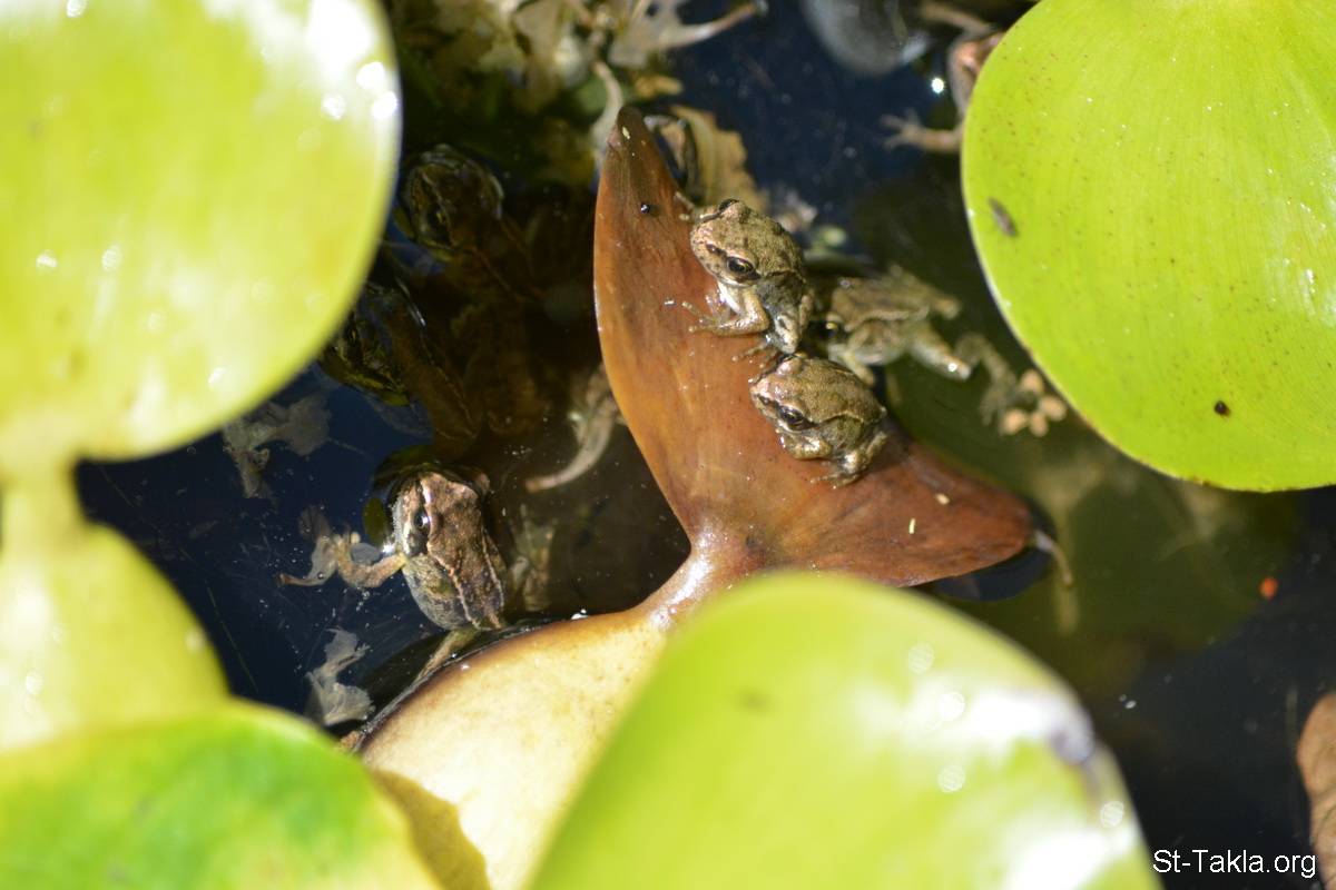 العديد من الضفادع في الماء ما بين نبات ورد النيل - من صور الحدائق النباتية القومية، دبلن، أيرلندا - تصوير مايكل غالي لموقع الأنبا تكلاهيمانوت، 15 و17 يونيو و5 و6 يوليو 2017 م.