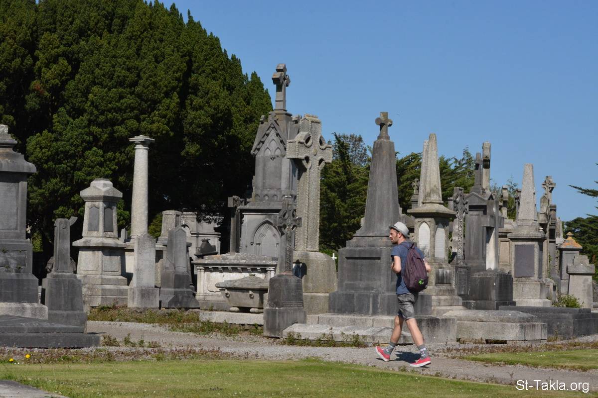 شاب يزور قبر أحد أقاربه - من صور مدافن جلاسينفين، دبلن، أيرلندا - تصوير مايكل غالي لموقع الأنبا تكلاهيمانوت، 15 و17 و18 يونيو 2017 م.