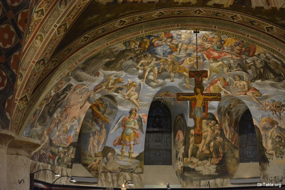 - صور الكنيسة السفلى بكاتدرائية القديس فرنسيس الأسيزي، أسيزي، إيطاليا. أُنشئت عام 1253. - تصوير مايكل غالي لموقع الأنبا تكلاهيمانوت، سبتمبر 2014