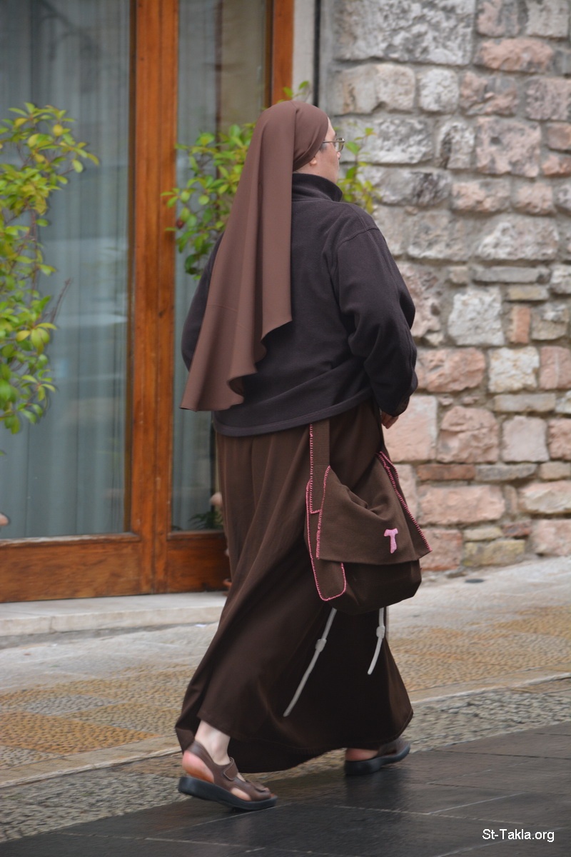 راهبة فرنسيسكانية كاثوليكية سائرة (صورة 1) - صور متنوعة من أسيزي، إيطاليا - تصوير مايكل غالي لموقع الأنبا تكلاهيمانوت، 24 سبتمبر 2014 م.