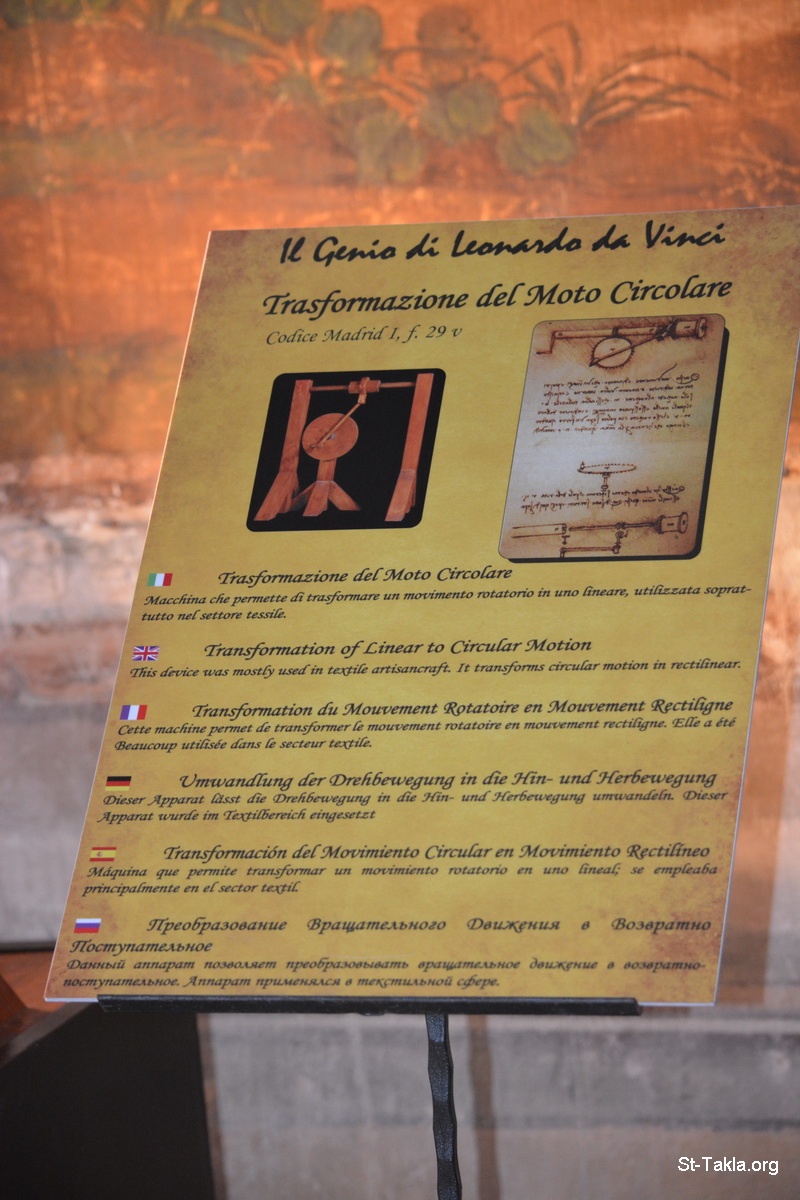 - صور متحف آلات الفنان ليوناردو دا فينشي (ليوناردو دي سير بيرو دافينشي)، أسيزي، إيطاليا. - تصوير مايكل غالي لموقع الأنبا تكلاهيمانوت، 24 سبتمبر 2014 م.