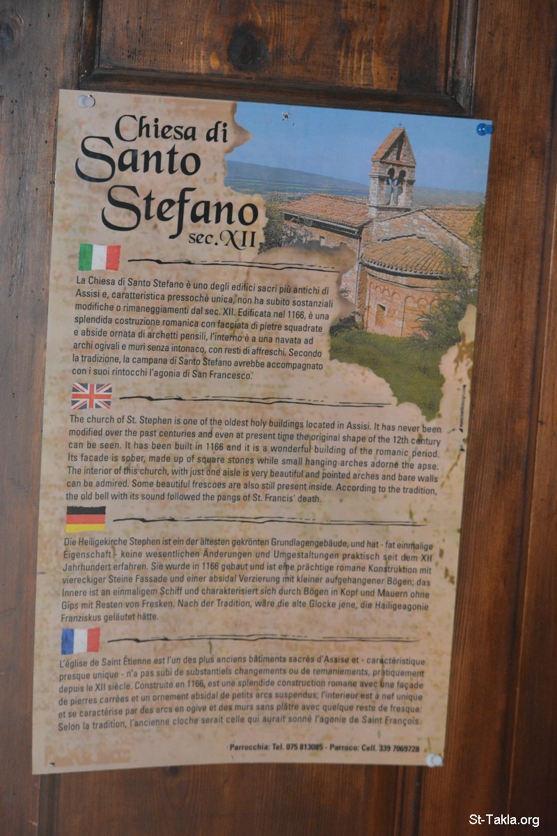 - صور كنيسة القديس استفانوس (سانتو ستيفانو)، أسيزي، إيطاليا. وترجع إلى منتصف القرن الثاني عشر. - تصوير مايكل غالي لموقع الأنبا تكلاهيمانوت، 24 سبتمبر 2014 م.