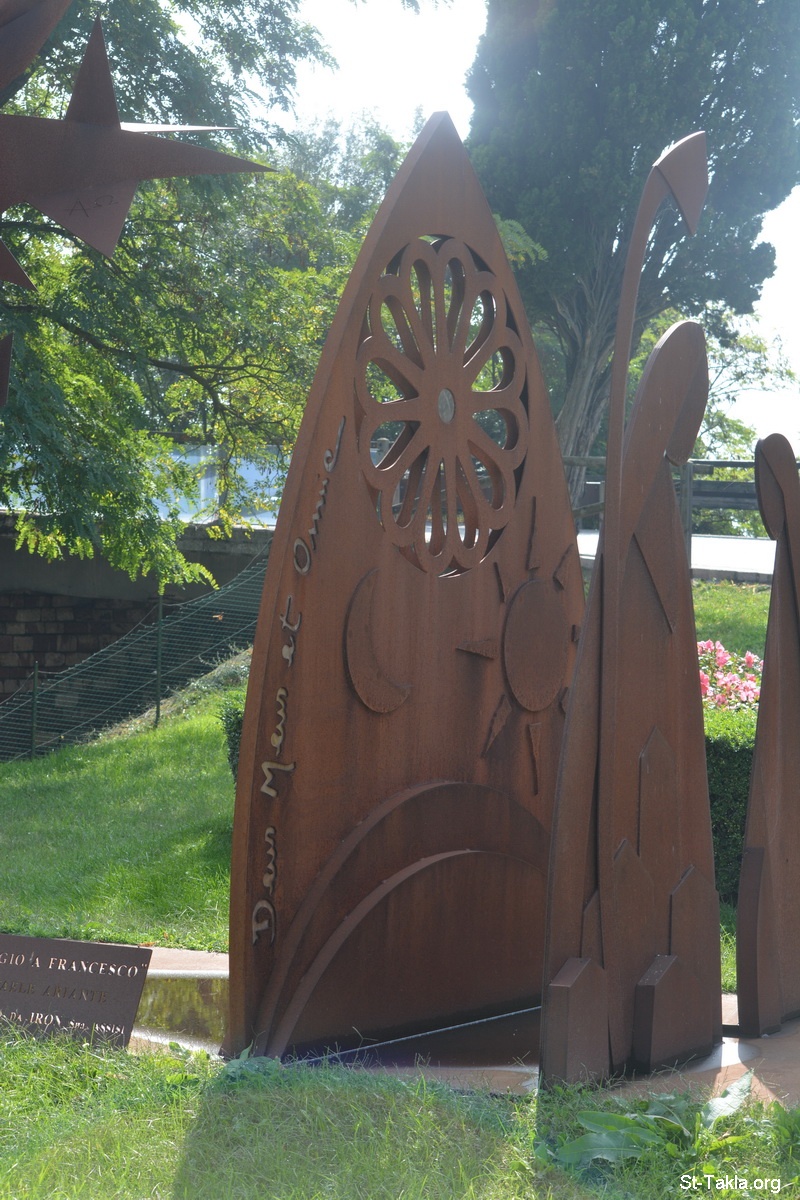 العائلة المقدسة (صورة 5)، تحية للقديس فرنسيس، نحت حديدي للفنان رافائيل أريانتي - صور متنوعة من أسيزي، إيطاليا - تصوير مايكل غالي لموقع الأنبا تكلاهيمانوت، 25 سبتمبر 2014 م.