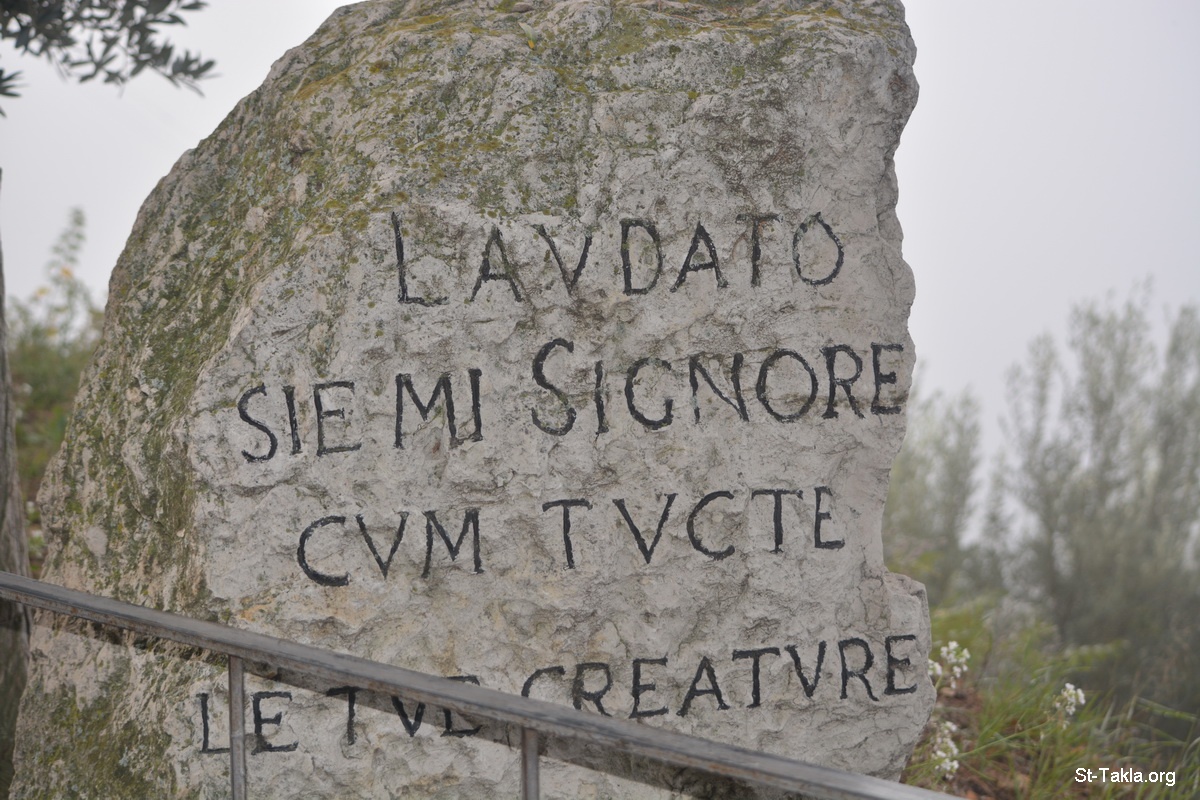 نقش في الغابة: "ممجد أنت يا ربي من خلال جميع مخلوقاتك" - نشيد الشمس / مدح المخلوقات) ، ترنيمة دينية مؤلفة بواسطة القديس فرنسيس الأسيزي. - صور كنيسة القديس داميانو، أسيزي، إيطاليا. والذي ترجع إلى القرن الثاني عشر، حيث أُنشئ بها أول دير في نظام القديسة كلير. - تصوير مايكل غالي لموقع الأنبا تكلاهيمانوت، 25 سبتمبر 2014 م.