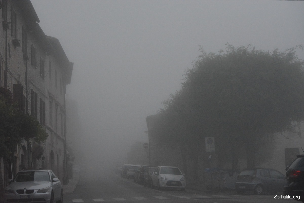ضباب كثيف - صور متنوعة من أسيزي في الضباب، إيطاليا. - تصوير مايكل غالي لموقع الأنبا تكلاهيمانوت، 25 سبتمبر 2014 م.