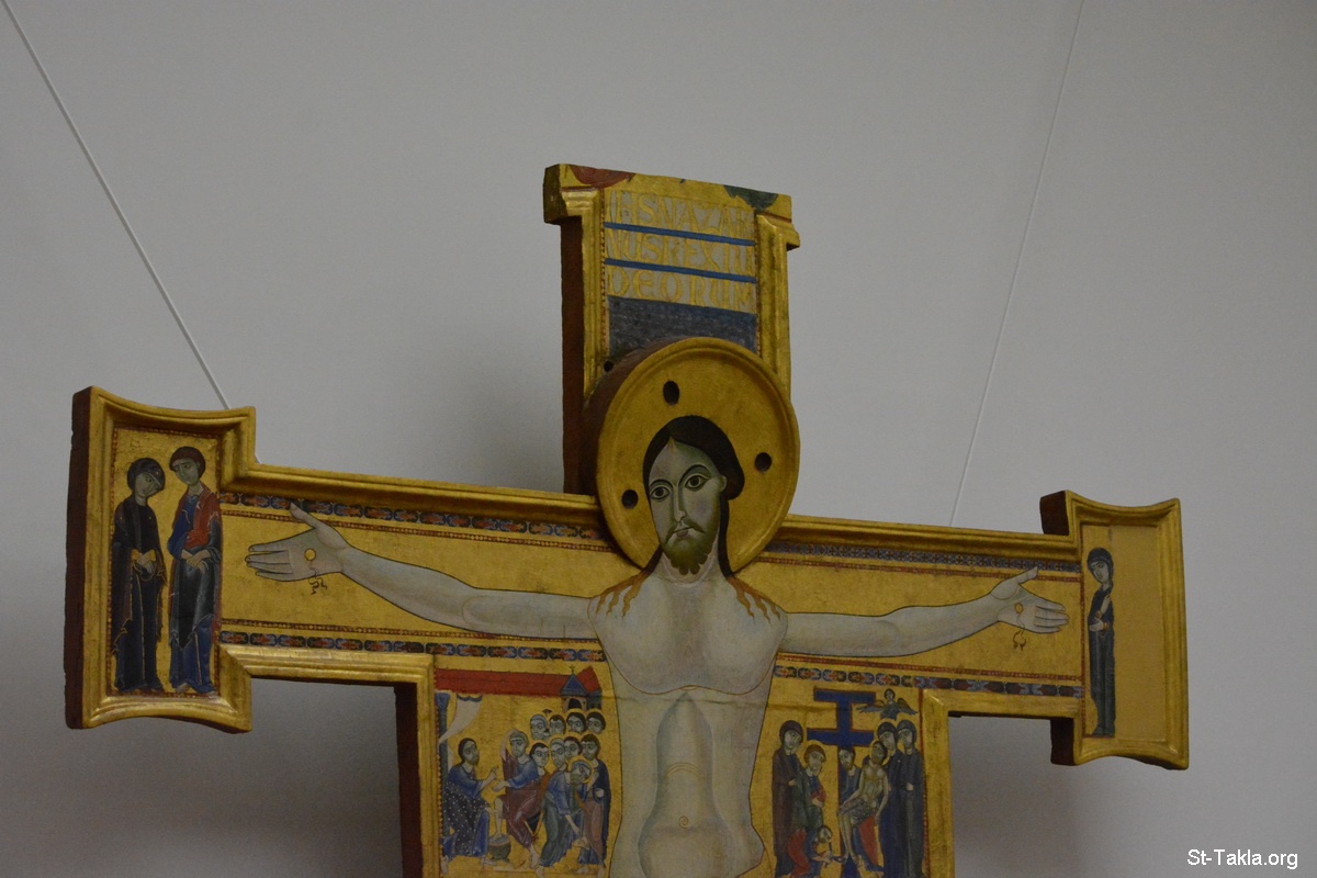 أيقونة الصلبوت (صلب السيد المسيح) مع قصص الخلاص والفداء (صورة 1)، لفنان فلورنتي، تيمبرا على خشب بمقاس 302×2100 سم، من الربع الأخير من القرن الثاني عشر - صور متحف معرض أوفيتزي (متحف أوفيزي)، فلورنسا (فيرينزي)، إيطاليا. وقد أنشئ عام 1581 م. - تصوير مايكل غالي لموقع الأنبا تكلاهيمانوت، 1 أكتوبر 2014 م.