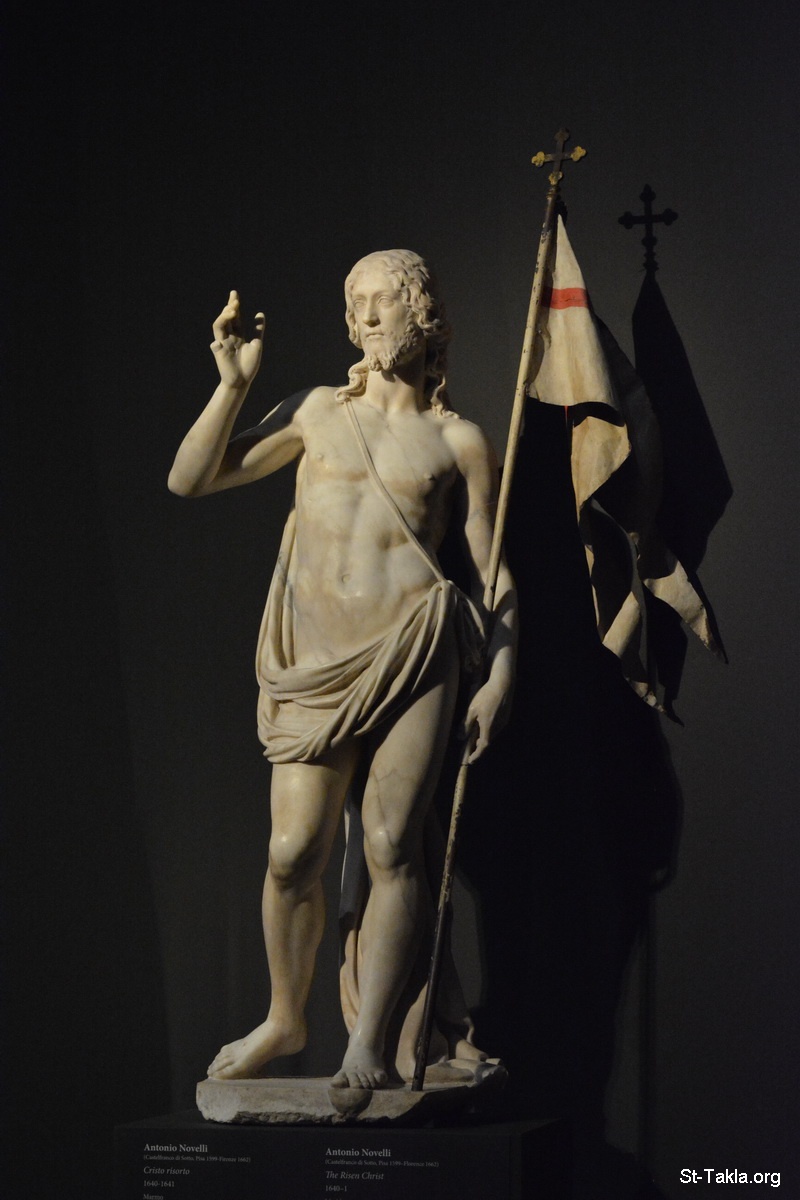 The Risen Christ (resurrection), marble statue by Antonio Novelli, 1640-1, (photo 3) - Uffizi Gallery (Galleria degli Uffizi), Florence (Firenze), Italy. It was established in 1581. - Photograph by Michael Ghaly for St-Takla.org, October 1, 2014.
