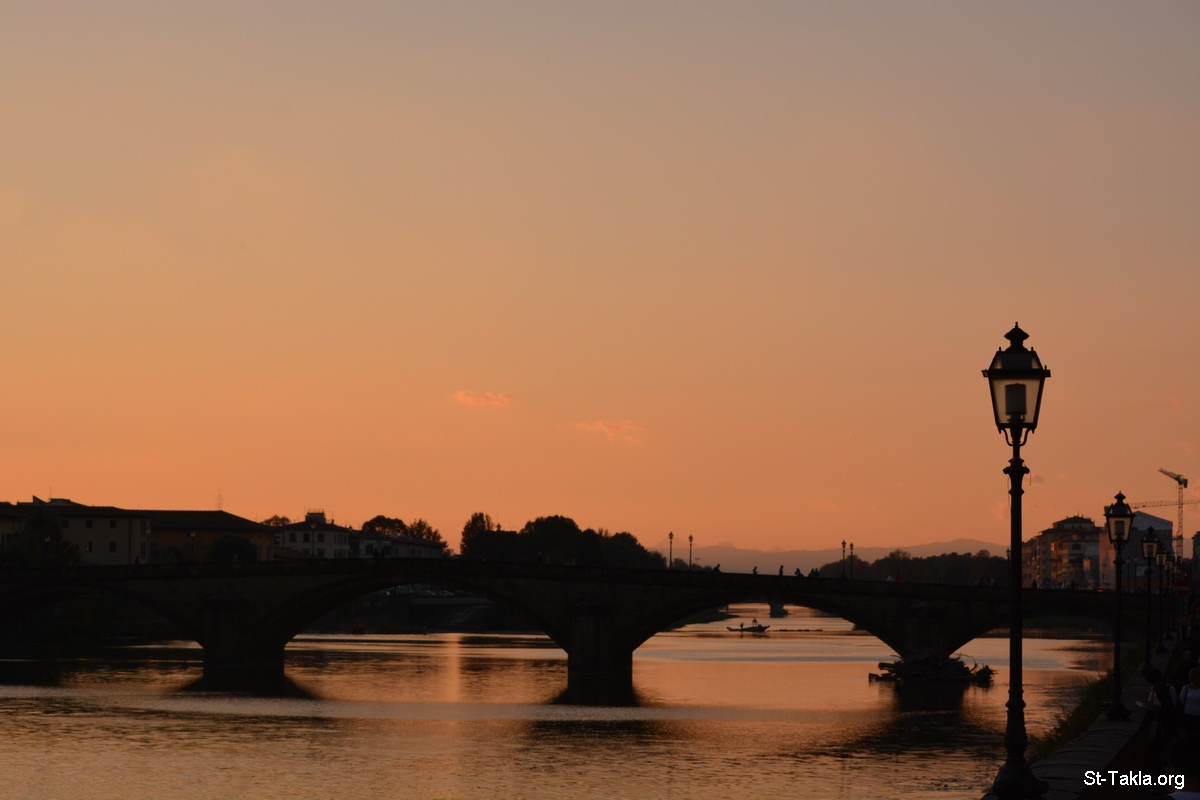 غروب الشمس على نهر أرنو، جسر - صور متنوعة من فلورنسا (فيرينزي)، إيطاليا - تصوير مايكل غالي لموقع الأنبا تكلاهيمانوت، 2 أكتوبر 2014 م.