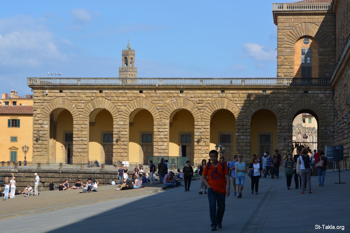 - Exterior of the Pitti Palace (The Palazzo Pitti), Florence (Firenze), Italy. It dates back to the 15th century. - Photograph by Michael Ghaly for St-Takla.org, October 2-3, 2014.