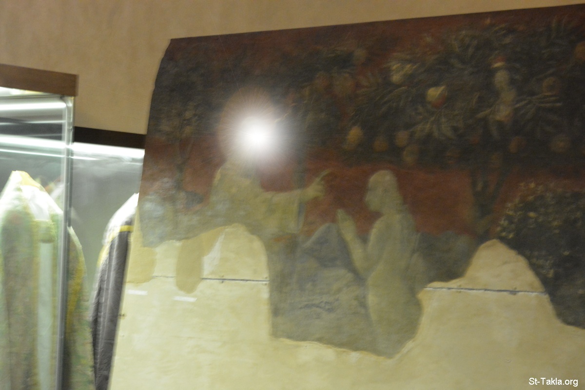لوحة جصية أثرية بعنوان: خلق الحيوانات، وآدم وحواء، والخطية الأصلية - رسم الفنان باولو أوتشيللو، عام 1430 م. تقريبًا، بمقاس 488×478 سم. - تفاصيل 1: لوحة جصية أثرية تصور خلق حواء من ضلع آدم مع آدم وحواء في الجنة - صور متحف كنيسة القديسة مريم العذراء الجديدة (بازيليكا دي سانتا ماريا نوفيلا)، فلورنسا (فيرينزي)، إيطاليا. - تصوير مايكل غالي لموقع الأنبا تكلاهيمانوت، 27 سبتمبر 2014 م.