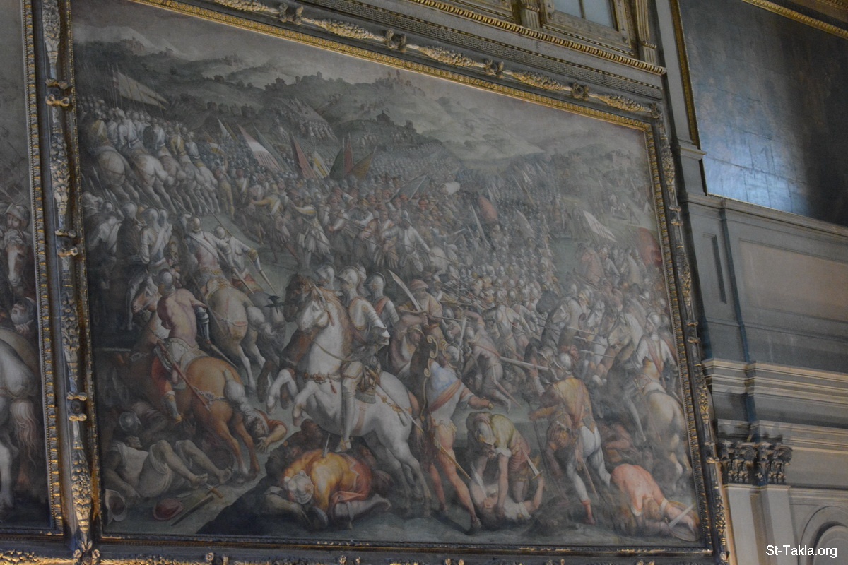- Hall of the Five Hundred (Salone dei Cinquecento) at the Museum of Palazzo Vecchio Palace, Florence (Firenze), Italy. - Photograph by Michael Ghaly for St-Takla.org, September 28, 2014.