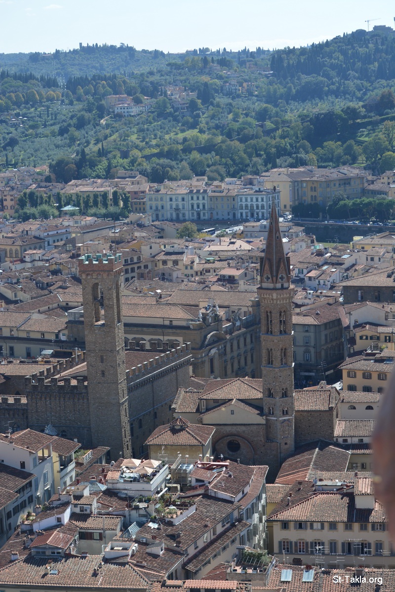 - View from above the Florence Cathedral: The Cattedrale di Santa Maria del Fiore (Il Duomo di Firenze, cattedrale metropolitana di Santa Maria del Fiore), Florence, Italy. - Photograph by Michael Ghaly for St-Takla.org, September 28-29, 2014.