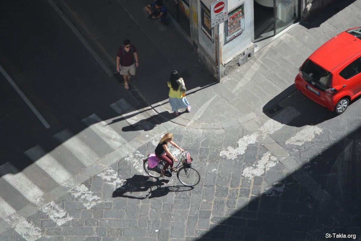 - View from above the Florence Cathedral: The Cattedrale di Santa Maria del Fiore (Il Duomo di Firenze, cattedrale metropolitana di Santa Maria del Fiore), Florence, Italy. - Photograph by Michael Ghaly for St-Takla.org, September 28-29, 2014.