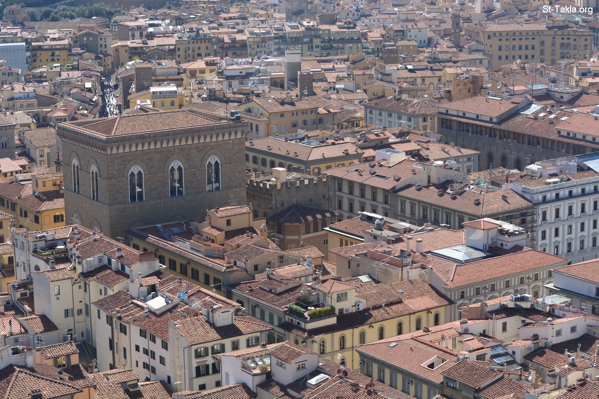 - View from above the Florence Cathedral: The Cattedrale di Santa Maria del Fiore (Il Duomo di Firenze, cattedrale metropolitana di Santa Maria del Fiore), Florence, Italy. - Photograph by Michael Ghaly for St-Takla.org, September 28-29, 2014.