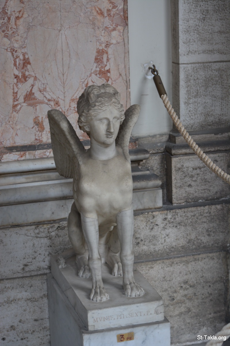 تمثال أثري يصور أبو الهول برأس امرأة - صور متاحف الفاتيكان، روما، إيطاليا - تصوير مايكل غالي لموقع الأنبا تكلاهيمانوت، 18 سبتمبر 2014 م.