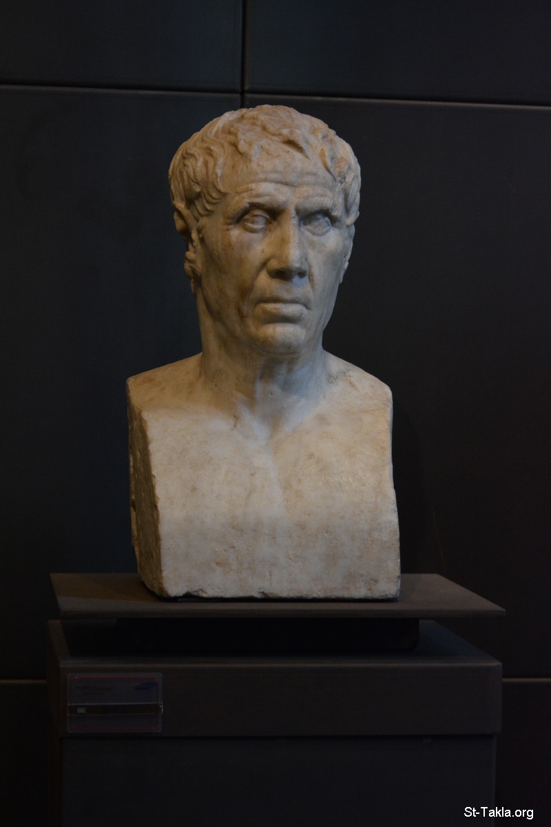 Male portrait herm, identifiable with Virgil, Theocritus or Ariarthes III of Cappadocia. - Capitoline Museums (Musei Capitolini), Rome, Italy. It is located in Piazza del Campidoglio, on top of the Capitoline Hill. It was established in 1734. - Photograph by Michael Ghaly for St-Takla.org, September 21, 2014.