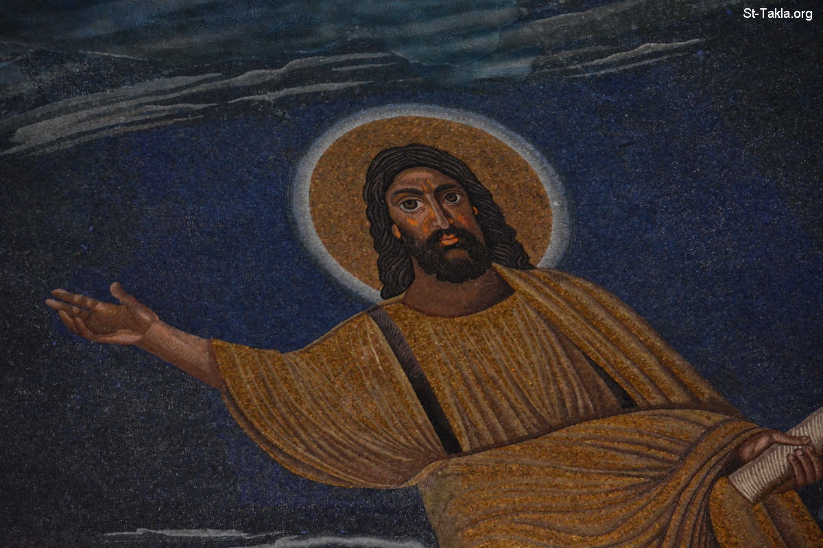 لوحة فسيفساء القبة (تفاصيل 13): السيد المسيح - صور كنيسة الشهيدان قزمان ودميان، روما، إيطاليا. وهي من الكنائس الأثرية التي تعود بعض آثارها إلى القرن الرابع الميلادي، وهي كنيسة شرفية. - تصوير مايكل غالي لموقع الأنبا تكلاهيمانوت، 21 سبتمبر 2014 م.