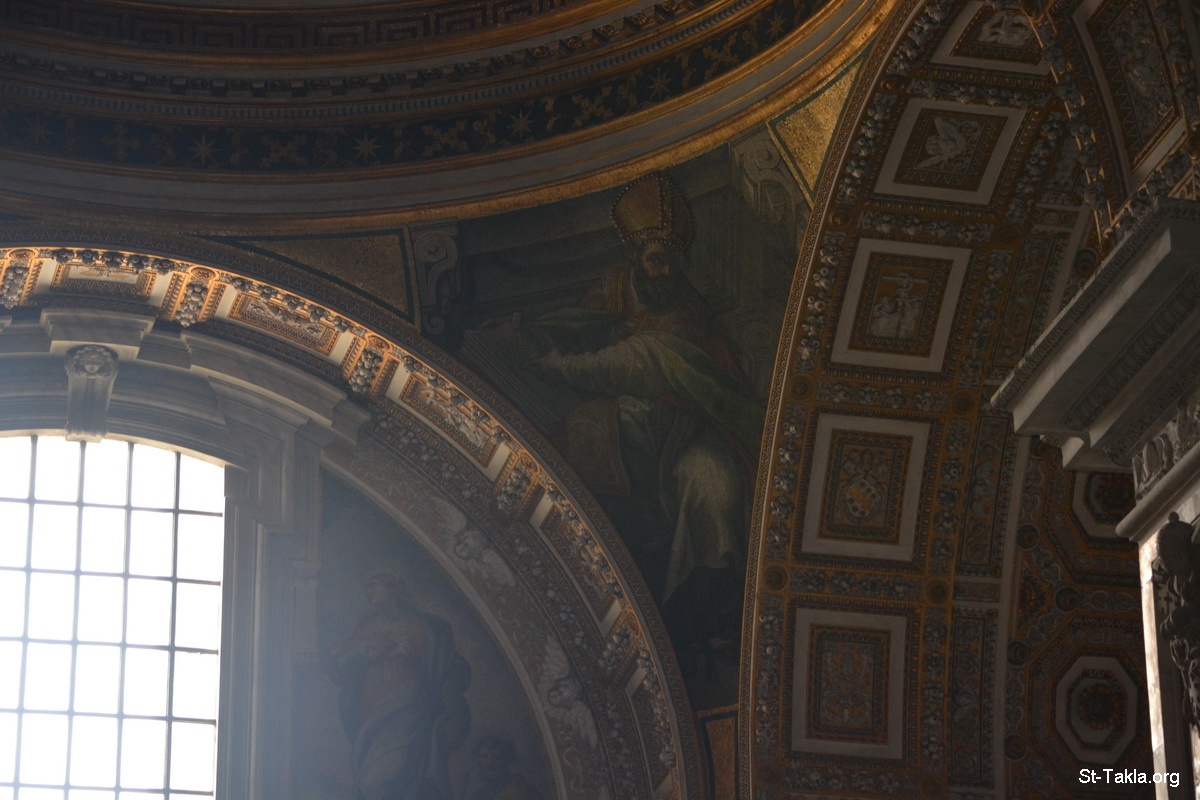 القديس أغسطينوس، في عروة العقد ما بين الأعمدة في الركن الشمالي الغربي من كنيسة كلامنتين. تصميم كريستوفورو رونكالي (يُعرف أيضًا باسم بومارانشيو 1552-1626)، لقطة 2. - صور كاتدرائية القديس بطرس الرسول، الفاتيكان، روما، إيطاليا. انتهى العمل بها في 18 نوفمبر 1626 م. - تصوير مايكل غالي لموقع الأنبا تكلاهيمانوت، 22 سبتمبر 2014 م.