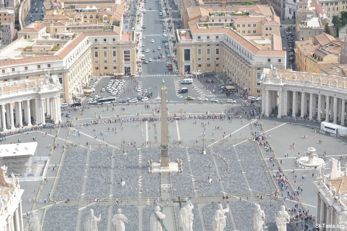 ميدان القديس بطرس أمام الكاتدرائية (المنظر من أعلى قبة مايكل أنجلو - صورة 4) - صور كاتدرائية القديس بطرس الرسول، الفاتيكان، روما، إيطاليا. انتهى العمل بها في 18 نوفمبر 1626 م. - تصوير مايكل غالي لموقع الأنبا تكلاهيمانوت، 22 سبتمبر 2014 م.