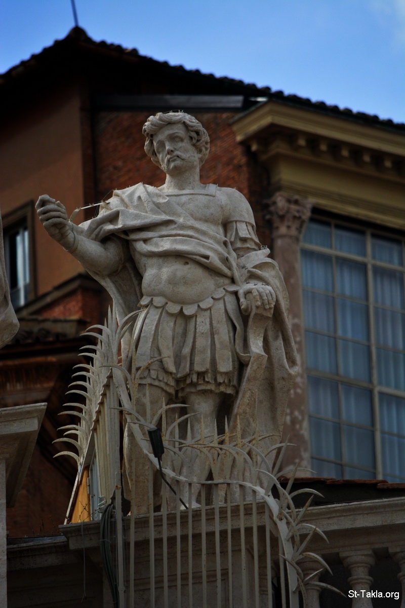 القديس جينيسيوس من آرل، تمثال تم إنشاؤه في حوالي عام 1662-1666 م.، بواسطة النحات بارتولوميو سينيني، بارتفاع 3,1 متر (10 أقدام و4 بوصات)، من الحجر الجيري. - صور كاتدرائية القديس بطرس الرسول، الفاتيكان، روما، إيطاليا. انتهى العمل بها في 18 نوفمبر 1626 م. - تصوير مايكل غالي لموقع الأنبا تكلاهيمانوت، 22 سبتمبر 2014 م.