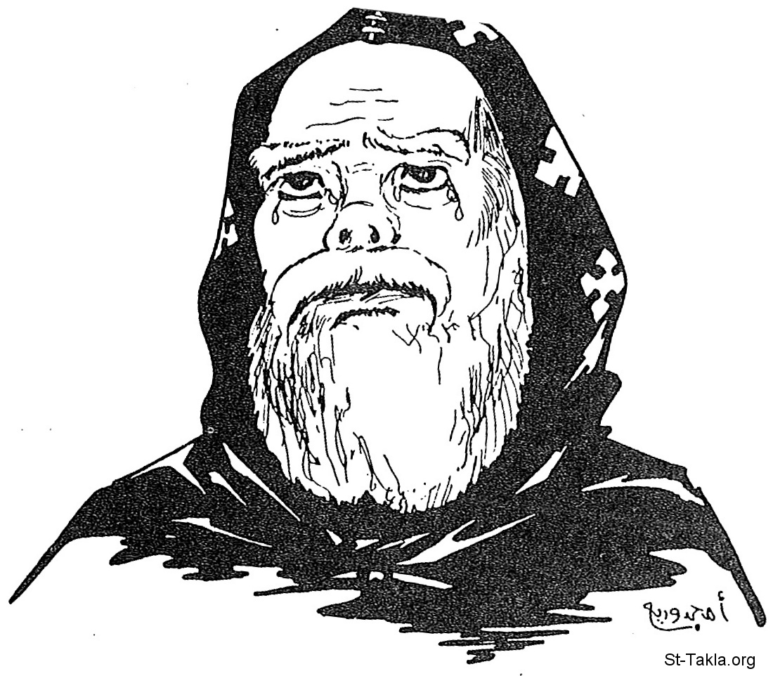 راهب قبطي أرثوذكسي (يصلي ويبكي)، رسم أمجد وديع.