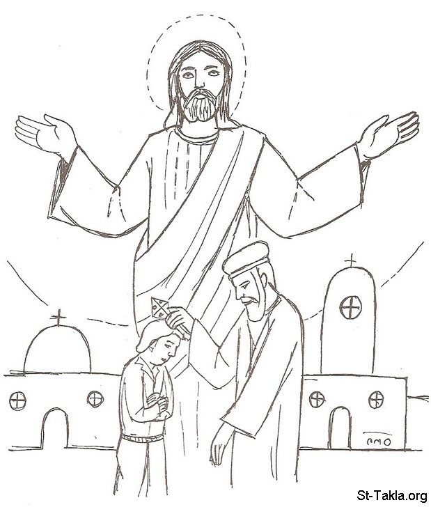 كاهن من الكنيسة القبطية الأرثوذكسية يعطي الحل من الخطايا لأحد المعترفين بعد سر الاعتراف، في حضرة السيد المسيح يسوع.