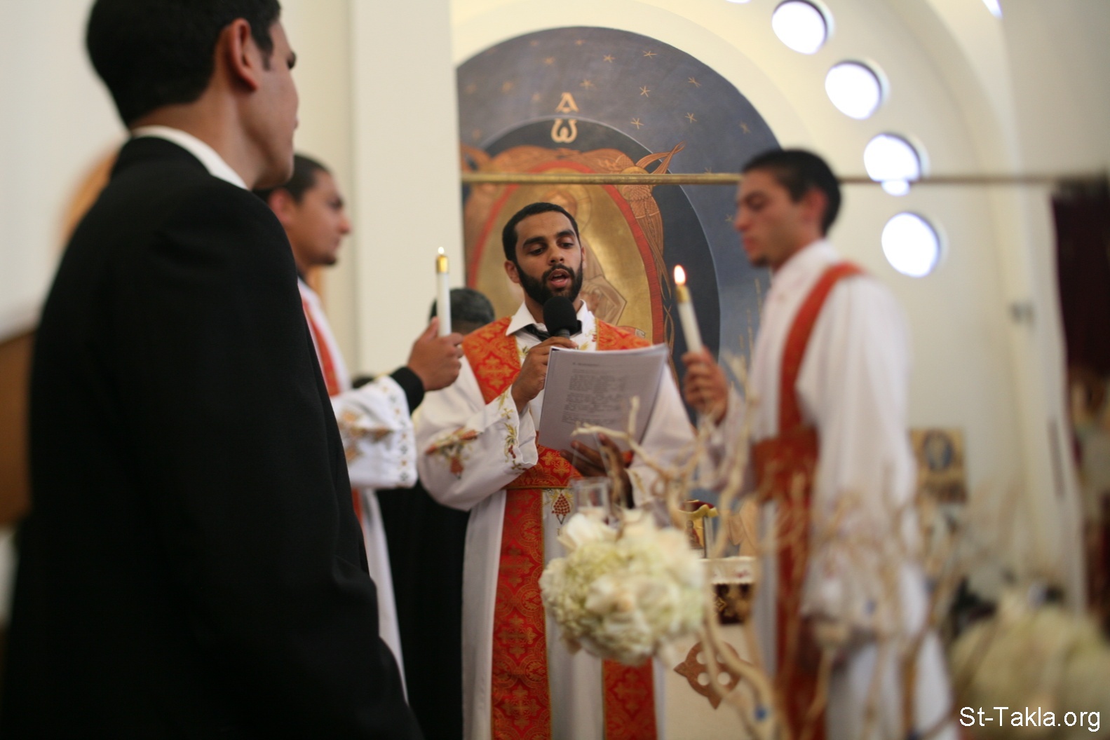 شماس قبطي يقرأ القراءات من الكتاب المقدس في سر الزواج - سر الزيجة (الزواج) في الكنيسة القبطية الأرثوذكسية