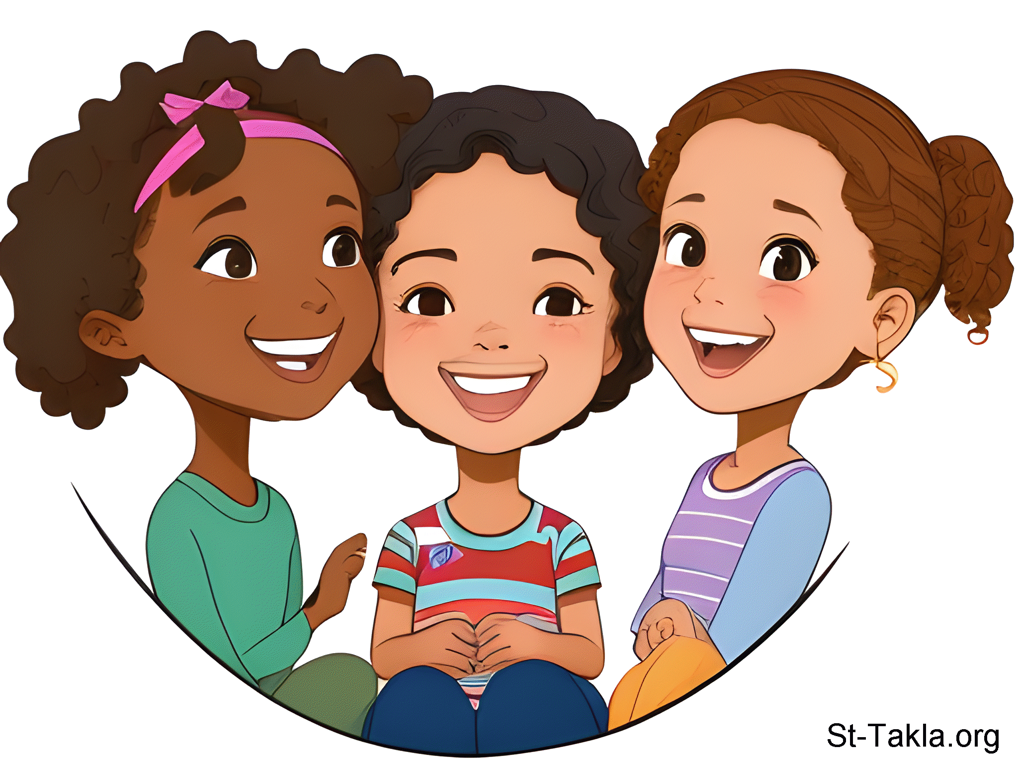 طفلة مع صديقاتها، فتاة تتحدث مع صديقاتها، الصداقة. - فن بالذكاء الاصطناعي، فكرة مايكل غالي لموقع الأنبا تكلاهيمانوت، 4 يناير 2024 م.