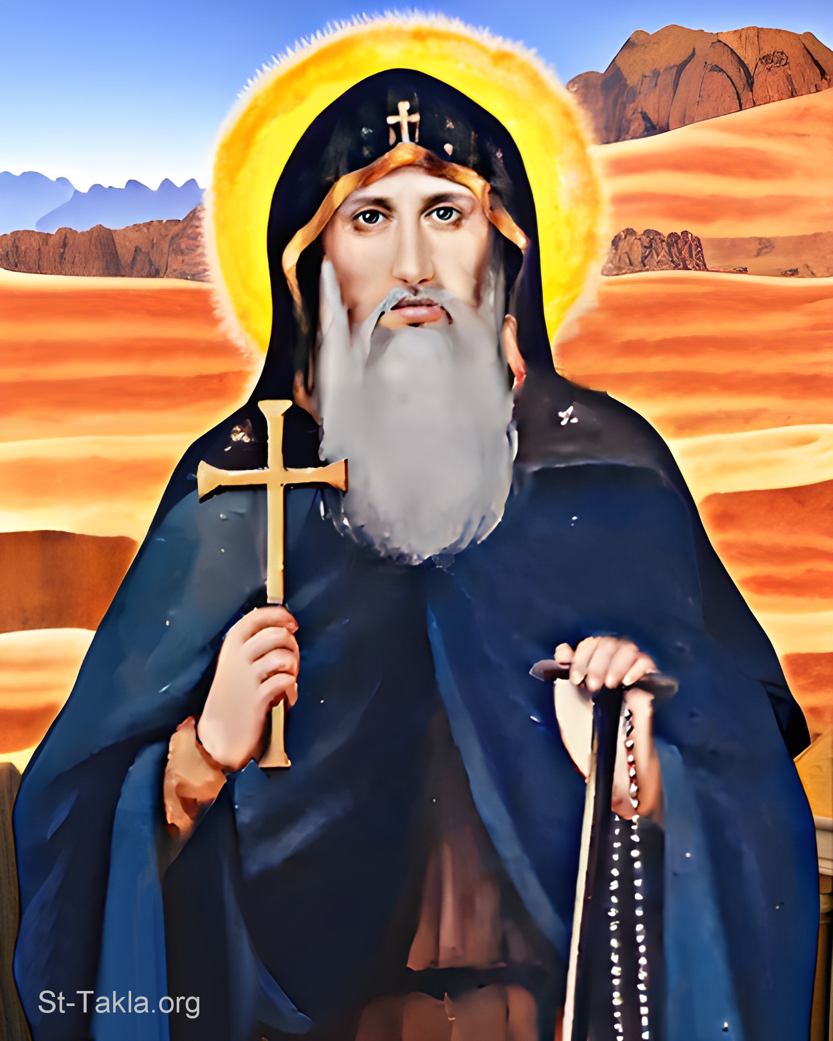 الشهيد آبا آري الشطانوفي - رسم سامي حنس (مع خلفية صحراء، تعديل مايكل غالي لموقع الأنبا تكلاهيمانوت).