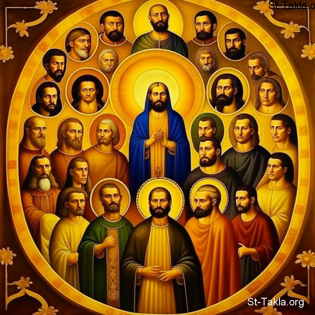 القديس الأنبا باخوميوس الكبير (أنبا باخوم) (صورة 1)، مع العديد من تلاميذه الرهبان - فن بالذكاء الاصطناعي، فكرة مايكل غالي لموقع الأنبا تكلاهيمانوت، 28 سبتمبر 2023 م.