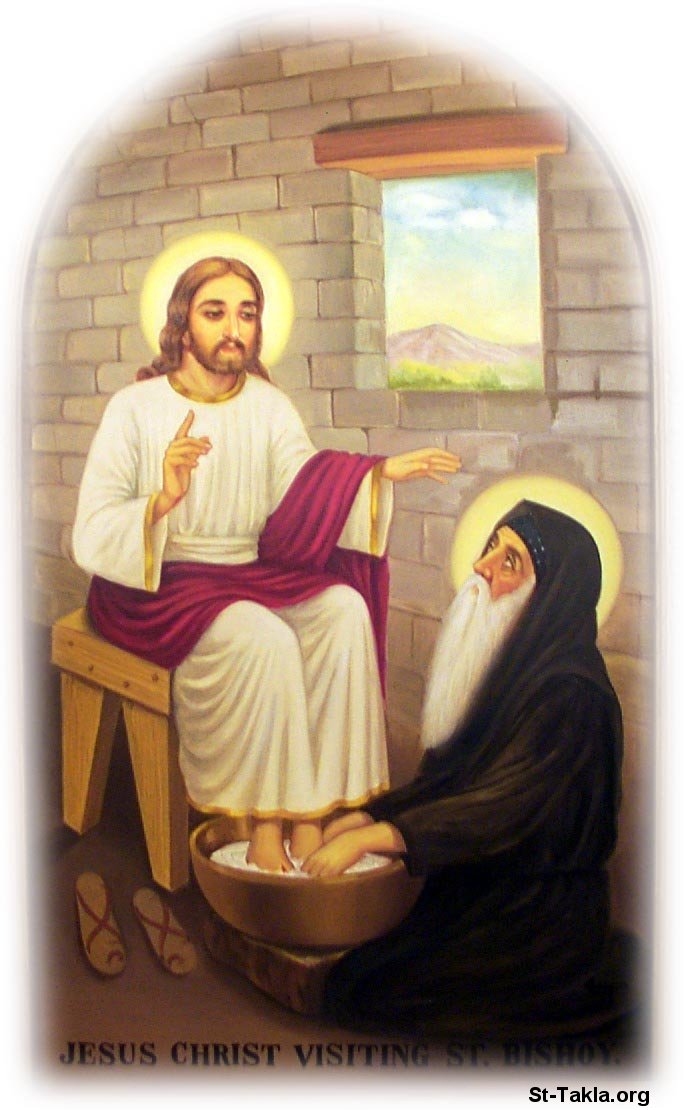 القديس الأنبا بيشوي حامل المسيح، السيد المسيح يزور القديس بيشوي.