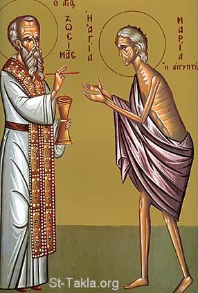 أيقونة يونانية تصور القديسة مريم المصرية القبطية التائبة مع القديس الأنبا زوسيما الفلسطيني.