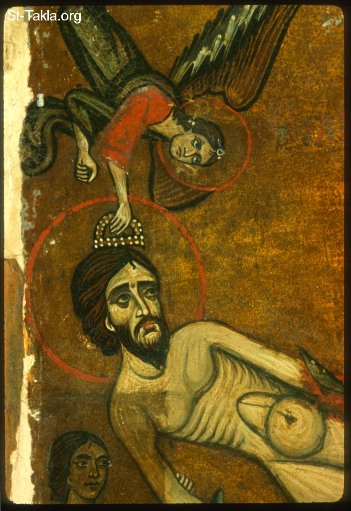 تفاصيل من صورة استشهاد القديس يعقوب المقطع (إنترسيسس) الفارسي، منشورة بموافقة بعثات ميتشيجان-برنستون-الإسكندرية لدير الشهيدة كاترين بصحراء سيناء، مصر