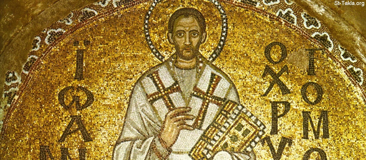 لوحة فسيفساء بيزنطية تصور القديس يوحنا كريسوستوم الأنطاكي (يوحنا ذهبي الفم) رئيس أساقفة القسطنطينية (البطريرك) - كاتدرائية هاجيا صوفيا في القسطنطينيه (اسطنبول حاليًا)، وترجع هذه اللوحة إلى أواخر القرن التاسع أو العاشر الميلادي.