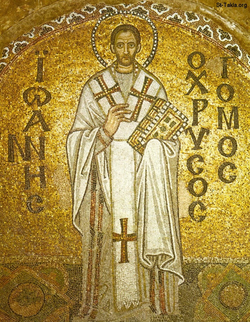 لوحة فسيفساء بيزنطية تصور القديس يوحنا كريسوستوم الأنطاكي (يوحنا ذهبي الفم) رئيس أساقفة القسطنطينية (البطريرك) - كاتدرائية هاجيا صوفيا في القسطنطينيه (اسطنبول حاليًا)، وترجع هذه اللوحة إلى أواخر القرن التاسع أو العاشر الميلادي.