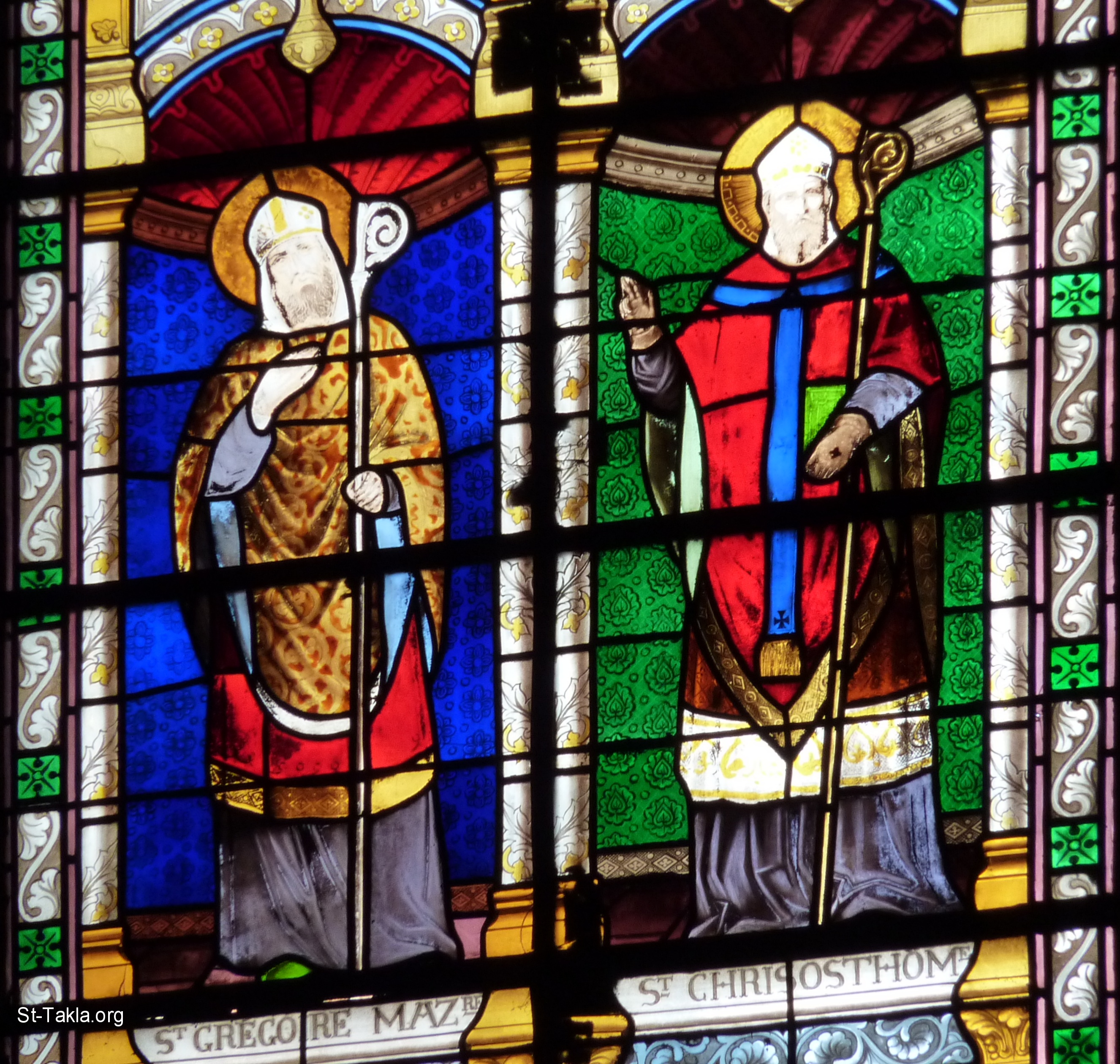 نافذة زجاج معشق في كنيسة القديس لويس في فونتين بلو في سين-إيه-مارن (إل دي فرنس)، وبها القديس إغريغوريوس النزينزي والقديس يوحنا الذهبي الفم - تصوير رينهاردهاوك