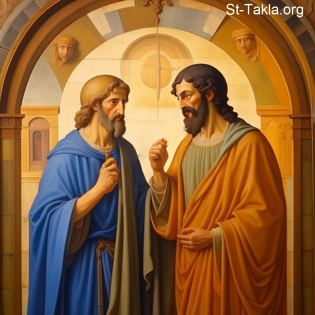 اثنان من الآباء يتحدثان (صورة 58)، محادثة، مناقشة، قديسان، رهبان - فن بالذكاء الاصطناعي، فكرة مايكل غالي لموقع الأنبا تكلاهيمانوت، 30 يناير 2024 م.