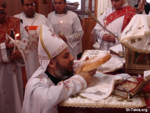 قدس أبونا كاراس إبراهيم يصلي القداس الإلهي - صور القداس الأول بعد ترميم كنيسة الأنبا تكلاهيمانوت، الإبراهيمية، الإسكندرية، 30 مارس 2007 - تصوير مايكل غالي لـ: موقع الأنبا تكلا هيمانوت