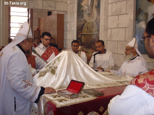 Father Kirellos Kolta and Fr. Angelos Fathi at St. Takla Church, Alexandria, Egypt - First Holy Liturgy at Saint TaklaHaimanout Coptic Orthodox Church, Alexandria, Egypt, after the 2007 reconstruction, 30 March 2007 - Photograph by Michael Ghaly for St-Takla.org