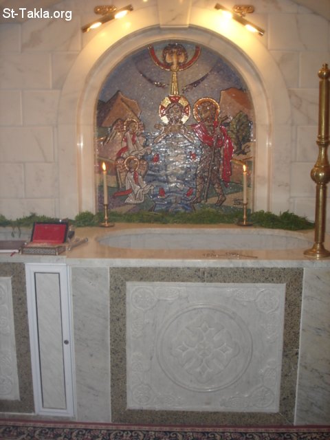أيقونة موزاييك (فسيفساء) تصور عماد السيد المسيح في نهر الأردن - صور تدشين المعمودية الجديدة بكنيسة الأنبا تكلاهيمانوت، الإبراهيمية، الإسكندرية بيد قداسة البابا شنوده الثالث، 5 أغسطس 2007 - تصوير مايكل غالي لـ: موقع الأنبا تكلا هيمانوت