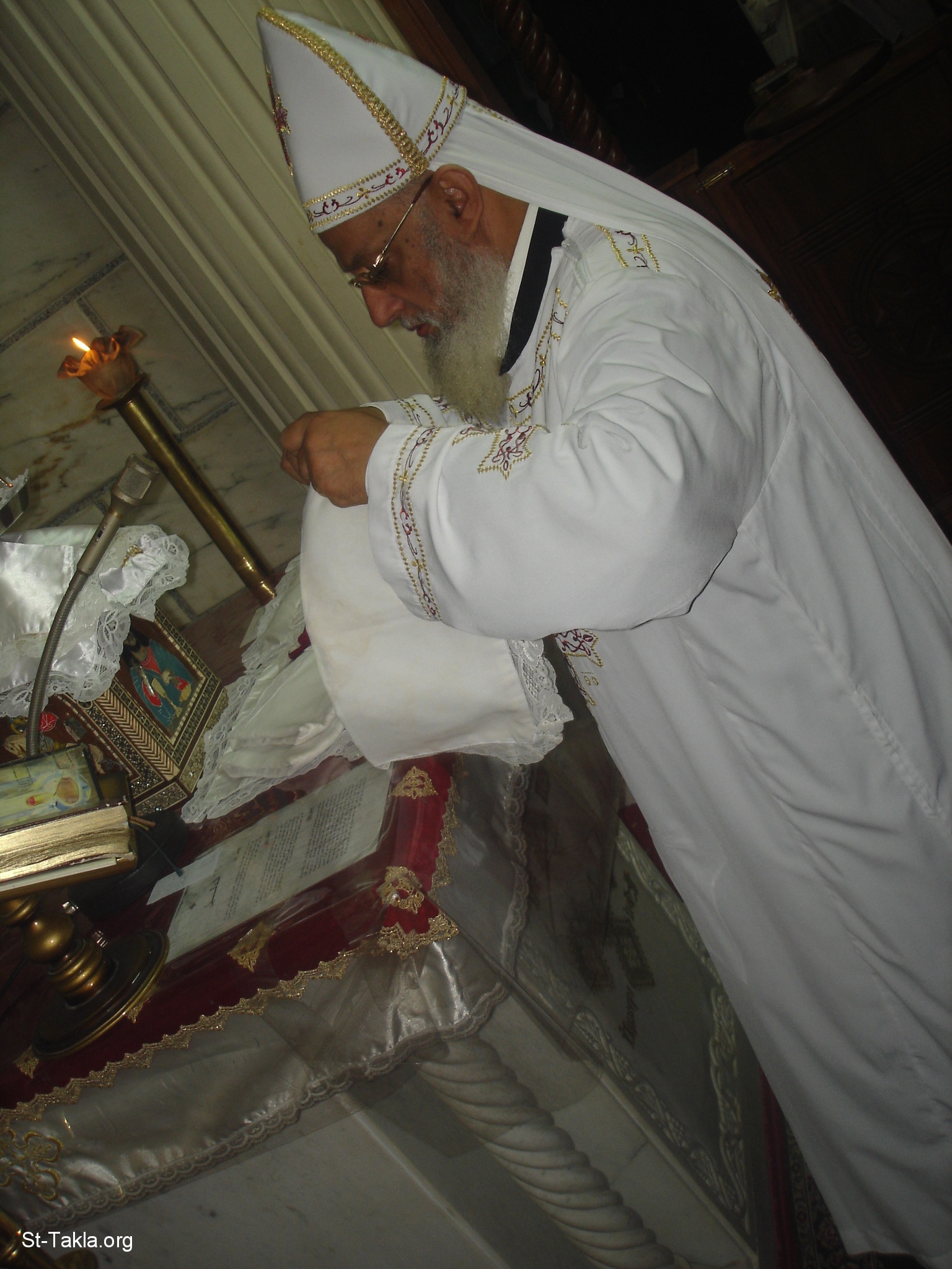 - from the Holy Liturgy by Rev. Hegomen Father Angelos Fathy, the priest of Saint TaklaHaymanout Coptic Orthodox Church, Ibrahimia, Alexandria, Egypt - Photograph by Michael Ghaly for St-Takla.org, October 13, 2012.