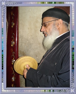 قدس أبونا القمص أنجيلوس فتحي عازر كاهن كنيسة الأنبا تكلاهيمانوت بالإسكندرية يقوم بعمل تمجيد بالدف