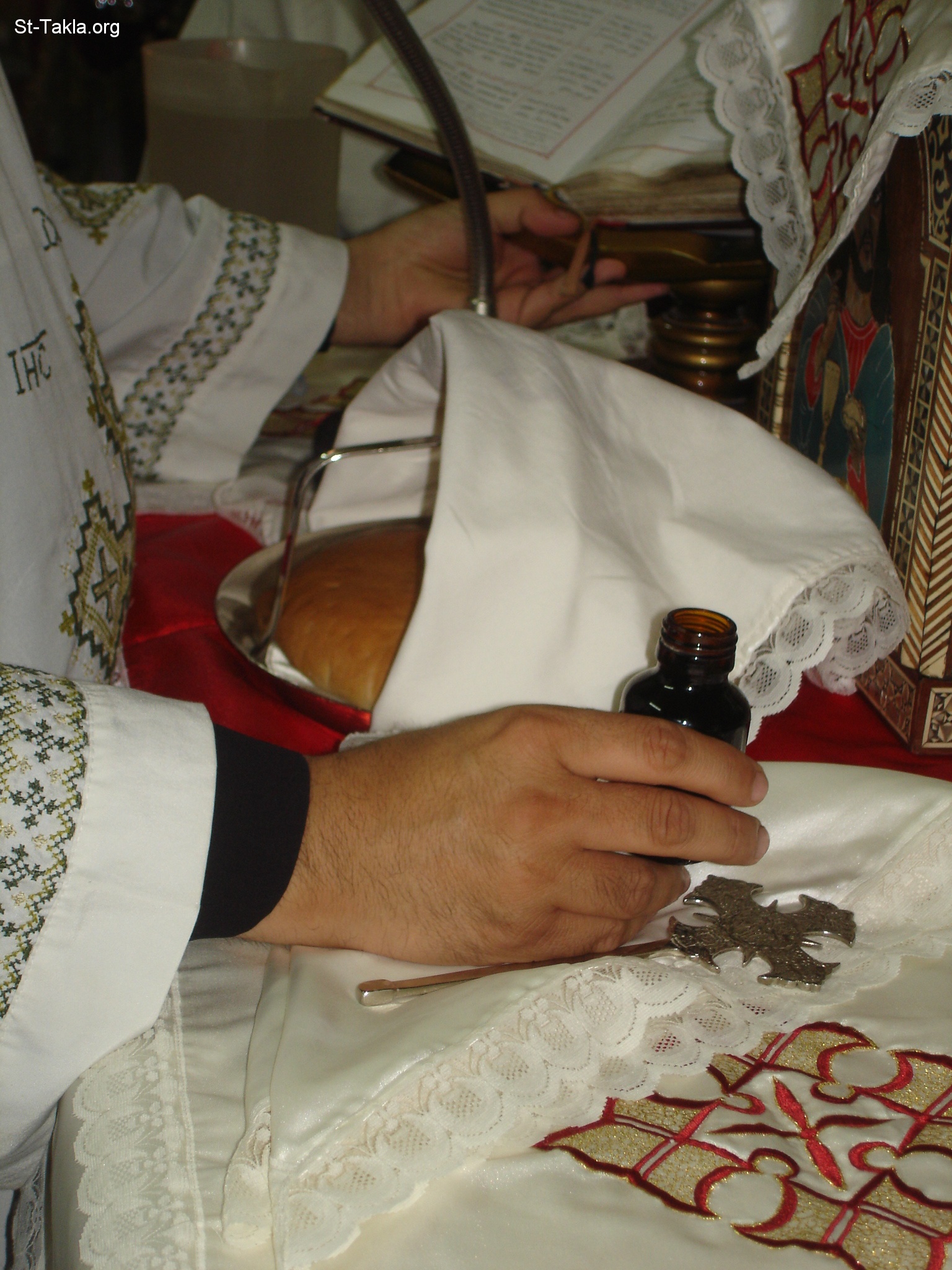 - from the Holy Liturgy by Rev. Father Karas Ibrahim, the priest of Saint TaklaHaymanout Coptic Orthodox Church, Ibrahimia, Alexandria, Egypt - Photograph by Michael Ghaly for St-Takla.org, May 12, 2012.