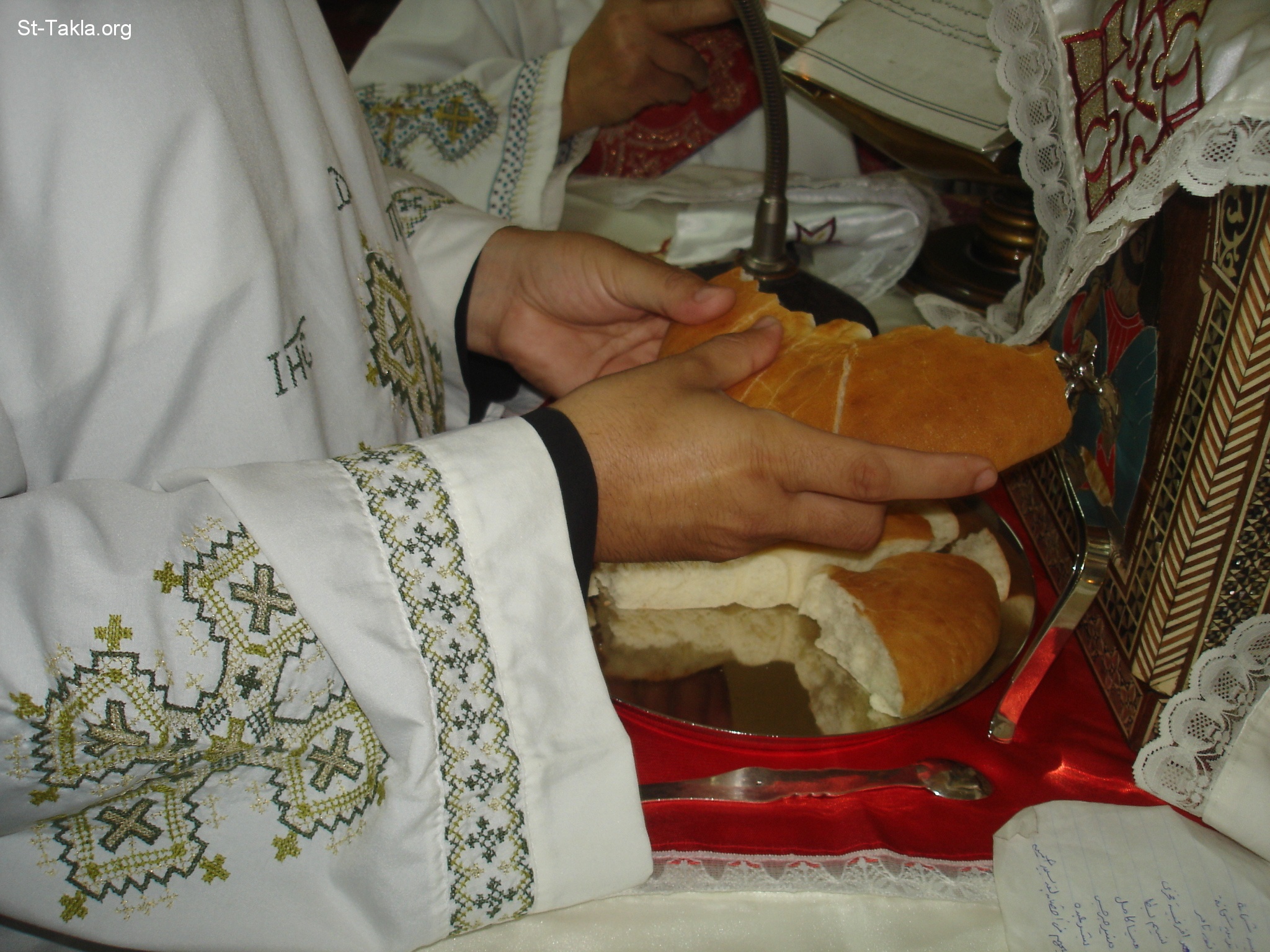 - from the Holy Liturgy by Rev. Father Karas Ibrahim, the priest of Saint TaklaHaymanout Coptic Orthodox Church, Ibrahimia, Alexandria, Egypt - Photograph by Michael Ghaly for St-Takla.org, May 12, 2012.