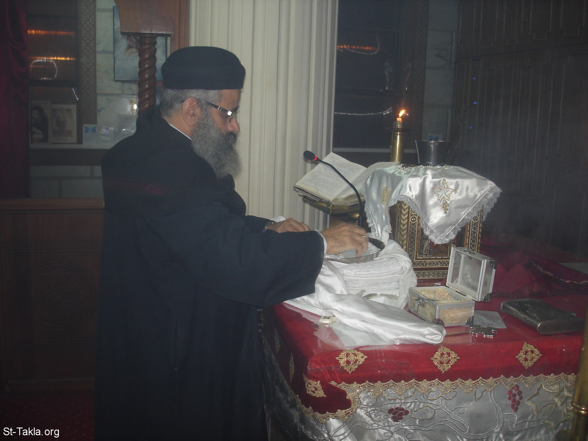 - from the Holy Liturgy by Rev. Father Phelimoun Soubhy, the priest of Saint TaklaHaymanout Coptic Orthodox Church, Ibrahimia, Alexandria, Egypt - Photograph by Michael Ghaly for St-Takla.org, February 9, 2013.