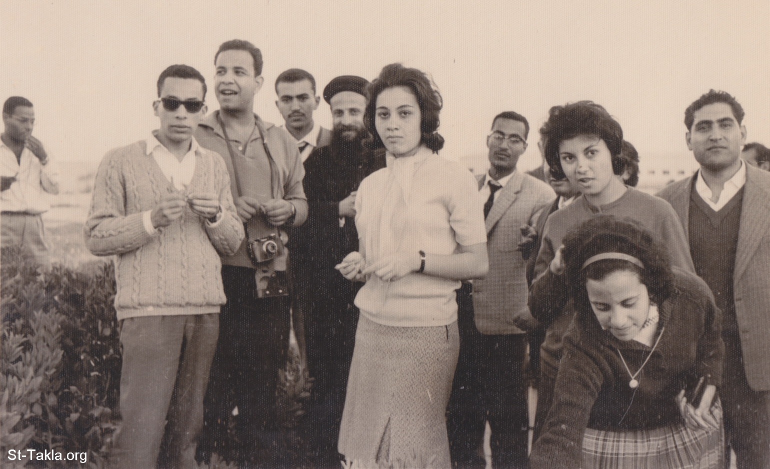 مجموعة من الشباب مع أبونا القمص بيشوي كامل، ومعهم بأسفل الصورة تاسوني فايزة زوجة أبونا تكلا لبيب - صور حفلات ورحلات شباب وشابات الكليات - من صور ألبومات القس تكلا لبيب، كاهن كنيسة الأنبا تكلا هيمانوت، الإبراهيمية، الإسكندرية، مصر (18).